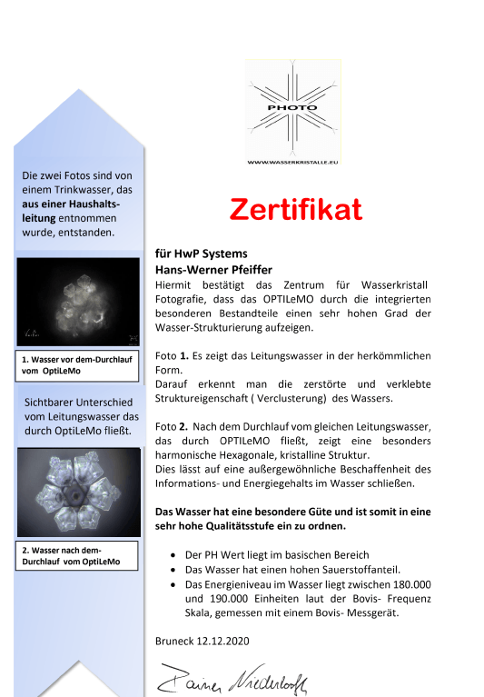 - The Bovis energy value of the tap water that is channeled through the OPTILeMO is between 170,000 and 190,000 Bovis units.